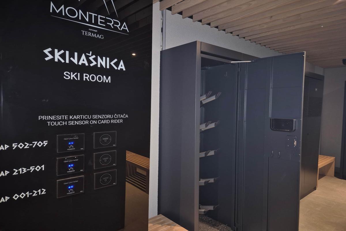 Vlasnici apartmana takođe imaju pristup zajedničkoj skijašnici sa odvojenim ormarićima za skije za svaki apartman. Do skijašnice, koja se nalazi na -2. spratu, može se doći liftom ili stepenicama izvan zgrade. Skijašnica je opremljena najsavremenijim grijanim ormarićima sa sušačima za skijaške čizme. Zahvaljujući ovim ormarićima, vaša ski oprema će vas čekati suva i topla, što svakako poboljšava iskustvo skijanja.