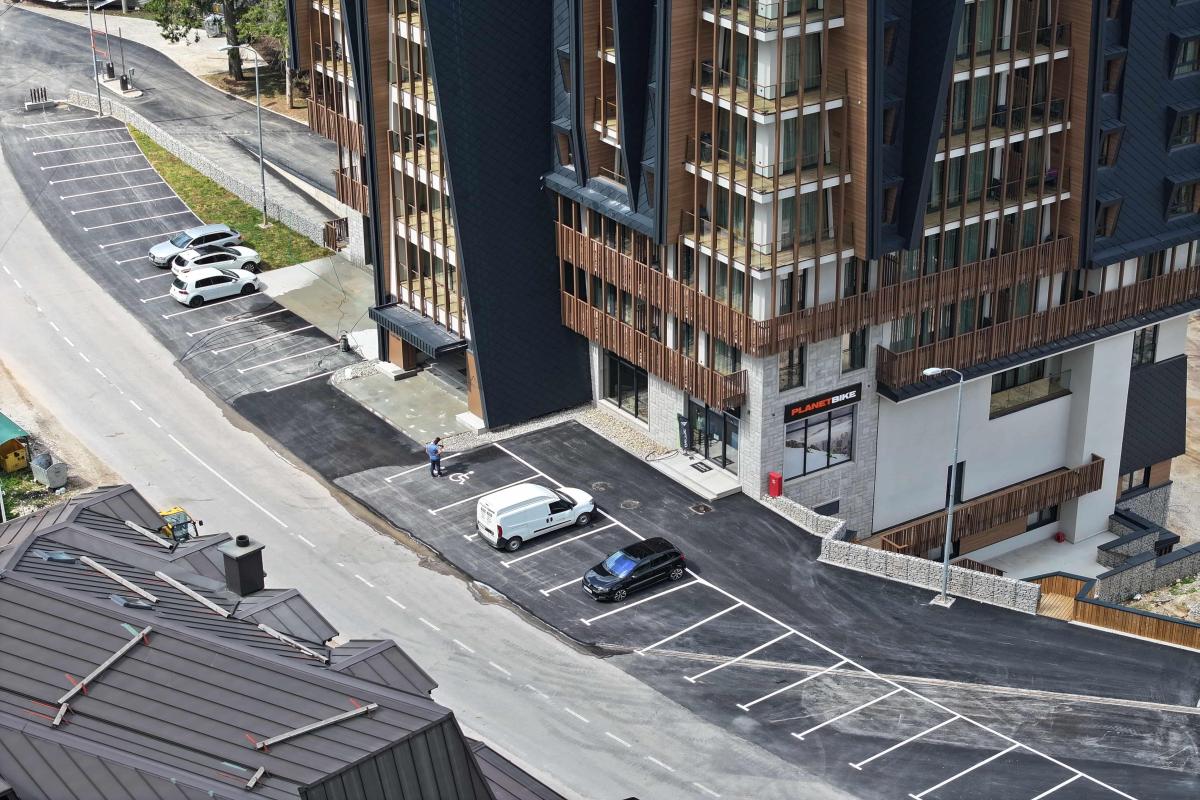 Prilikom projektovanja objekta Monterra, vodilo se računa o potpunom komforu budućih vlasnika apartmana tako da svaki apartman ima obezbjeđeno parking mjesto uz sami objekat, dok smo na etaži -1 smjestili garažu, gdje je moguć zakup određenog broja garažnih parking mjesta.